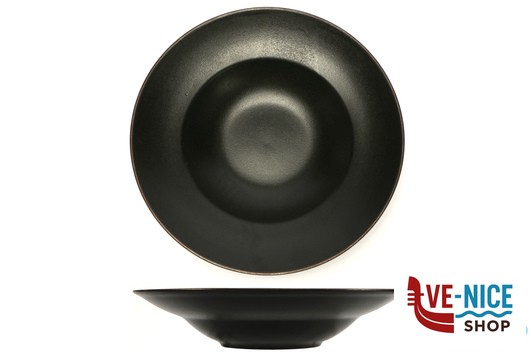 PIATTI ED ACCESSORI IN STONEWARE NERO, CON UN ELEGANTE BORDATURA RAMATA CHE DONA ELEGANZA AD UNA LINEA CHE SI ISPIRA ALLA TERRA ED AI COLORI DELLE ISOLE VULCANICHE