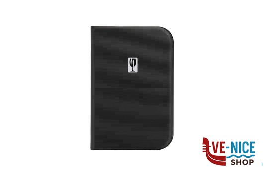 ESSENTIAL – PORTAMENU IN PVC A5 NERO CON MOTIVO RIGATO. PLACCA IN METALLO STILIZZATA SULLA COPERTINA. 10 INSERTI NON RIMOVIBILI CM23,7X17,2 MC-ESA5-BL