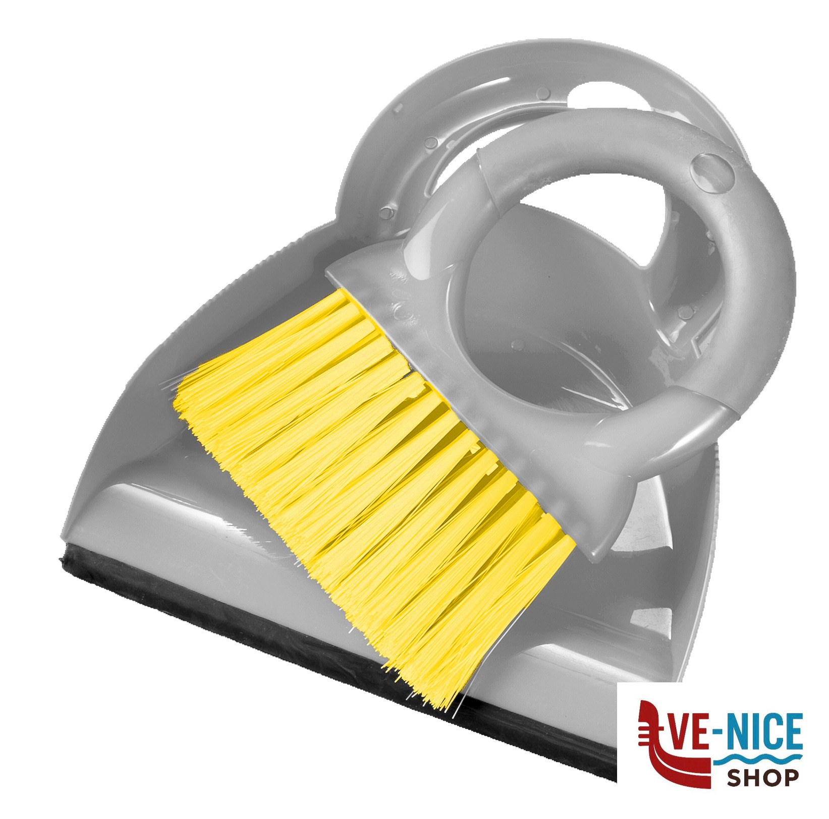 Small whisk and dust pan made of sturdy plastic material.Compact and easy to store. Colour: grey.