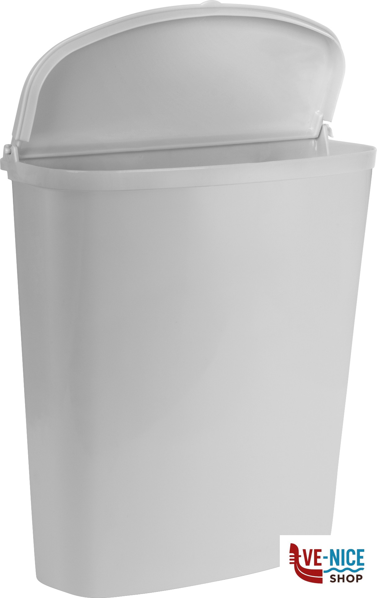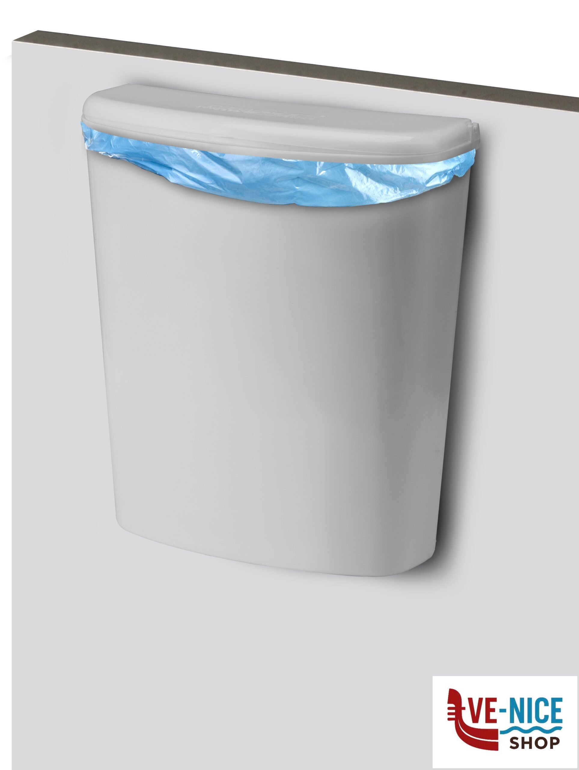 Cestino per rifiuti pensile con coperchio ad apertura manuale dal design curato, innovativo ed estremamente moderno. Molto utile e pratico per eliminare i piccoli rifiuti quotidiani su camper, caravan, barche e vetture in genere. Realizzato completamente in robusto materiale plastico.