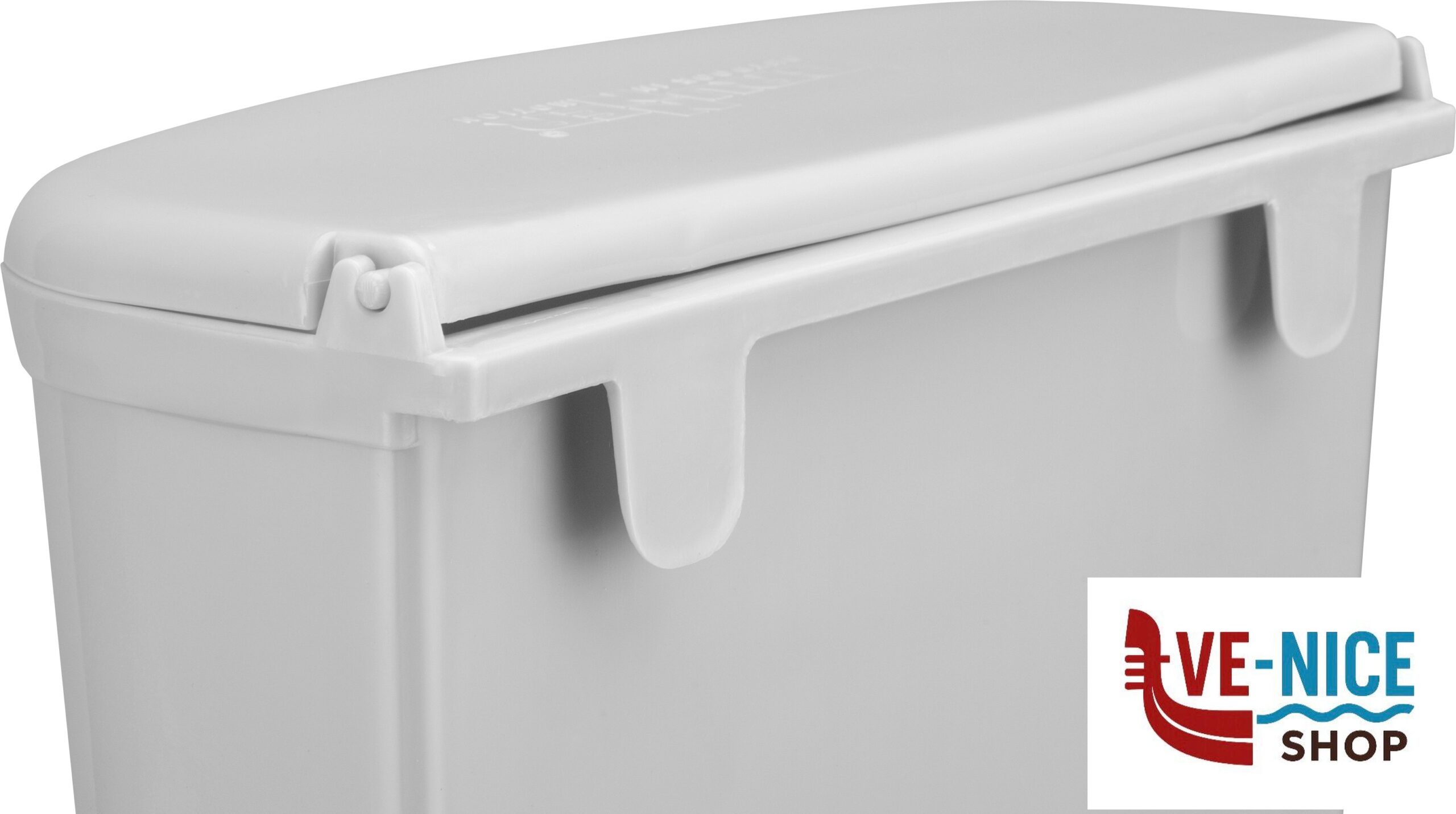 Litter bin with lid. Functional design. Very useful to keep the litter out of sight on RV’s and boats. Entirely made of sturdy plastic material.