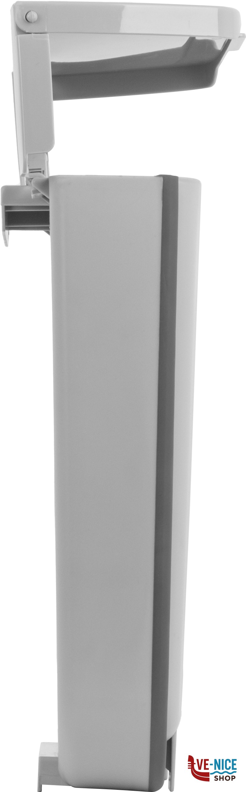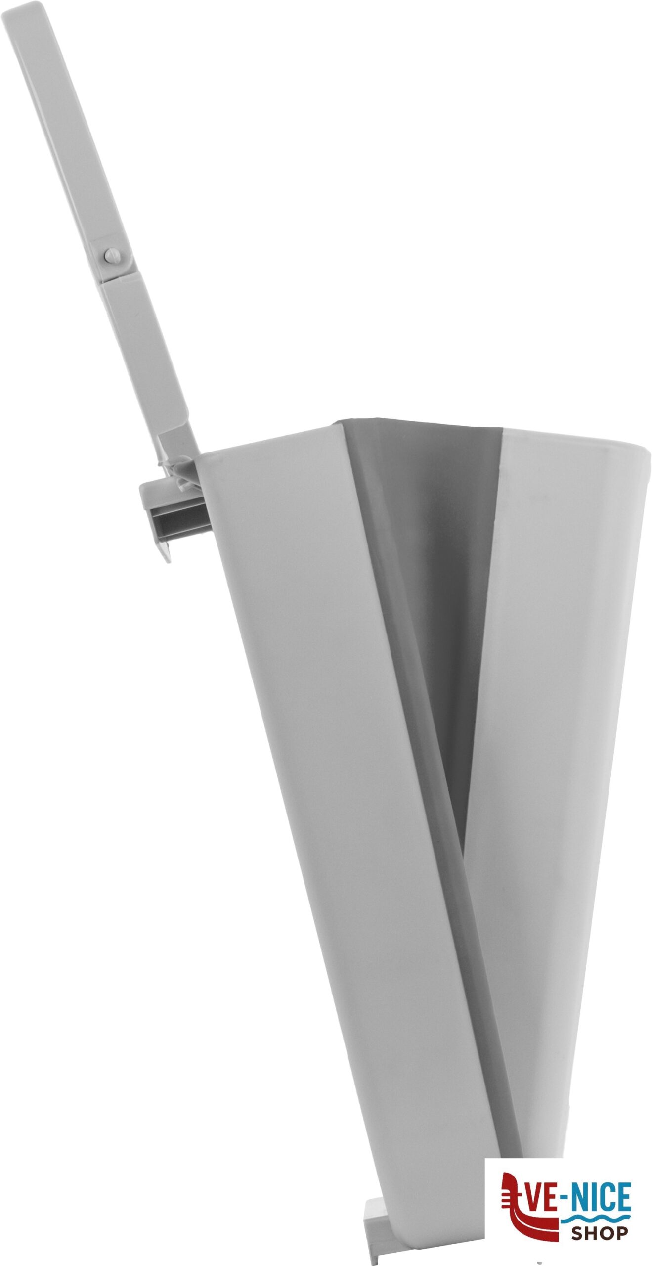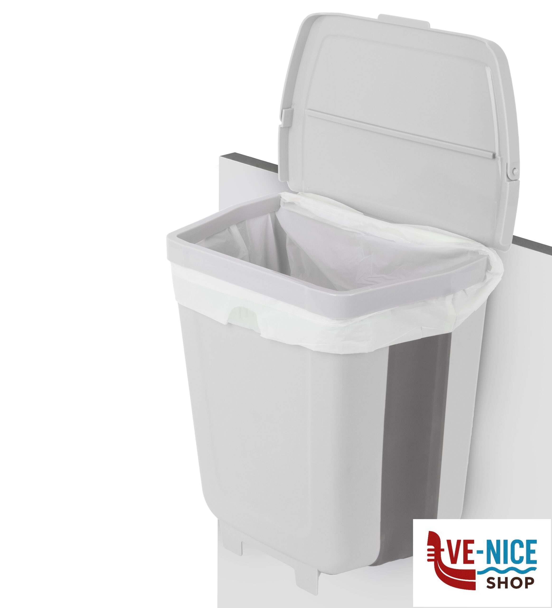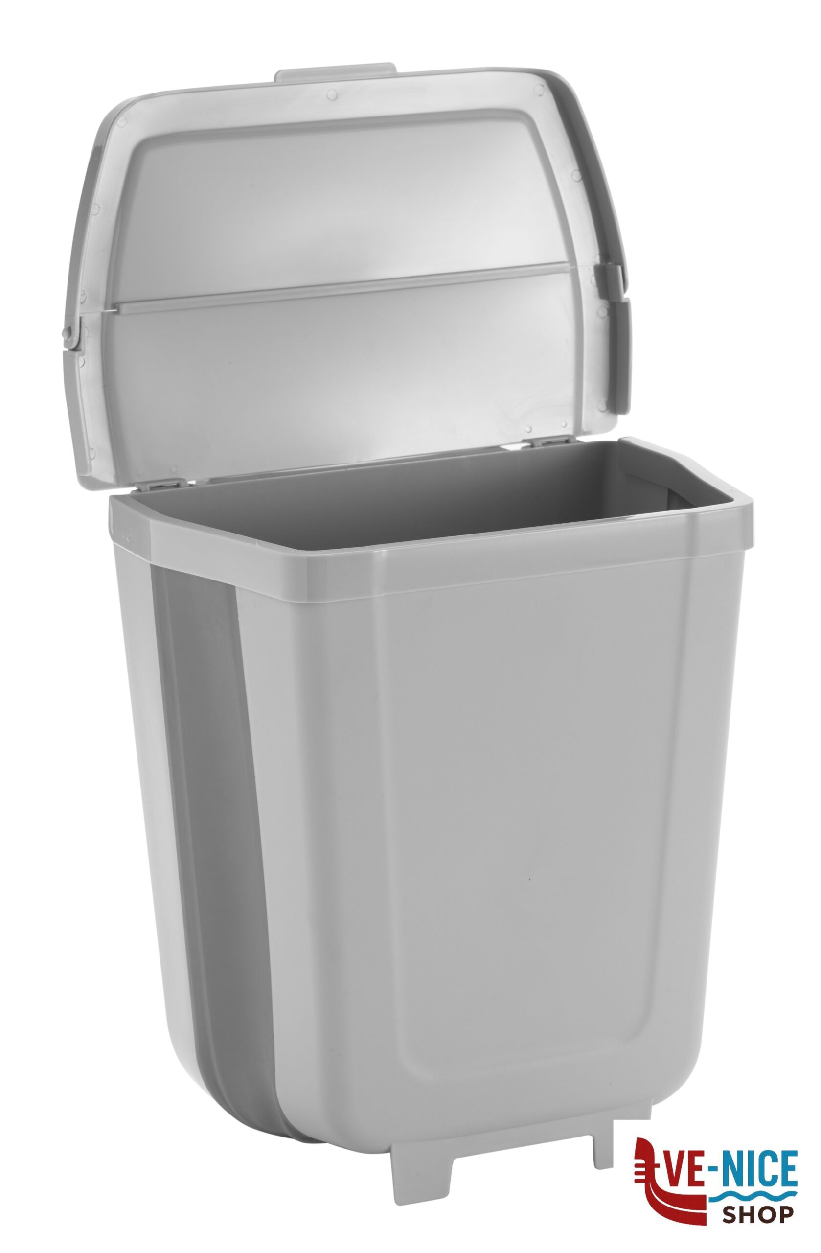 Cestino portarifiuti con coperchio ad apertura manuale, caratterizzato da una struttura pieghevole Fold-Away che in caso di inutilizzo consente di ridurre il suo volume d’ingombro di più del 50%. Corpo in resistente materiale termoplastico con fascia in TPR. Utilizzo come portarifiuti indipendente da pavimento oppure appeso a pareti, porte o ante.