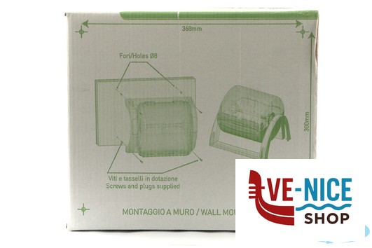 BASE IN ABS BIANCO E CARENATURA IN ABS TRASPARENTE – DIM. MAX ROTOLO: DIAM. 290 MM X (L) 290 MM – MURALE O DメAPPOGGIO – VITERIA INCLUSA