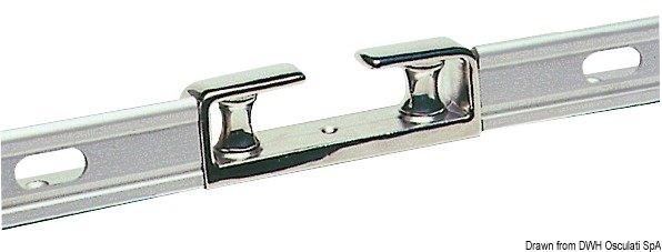 Rotaie, carrelli, falchette Profili falchetta e accessori Inox AISI 316 di nostra produzione Passacavo a rulli per falchetta In acciaio inox AISI 316 lucidato a specchio .