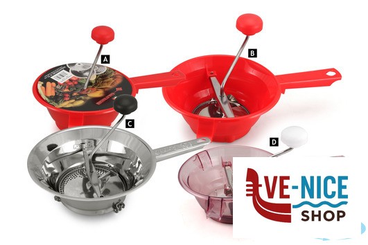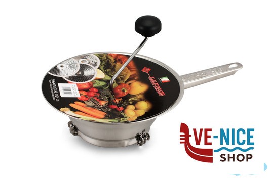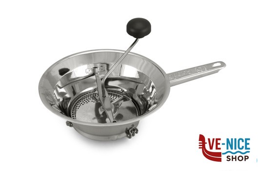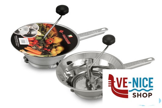 PASSAVERDURA IN ACCIAIO INOX PER ALIMENTI PIEDINI FISSI – 3 DISCHI ACCIAIO INOXFUNZIONAMENTO A MANOVELLAGANCIO APPENDERE