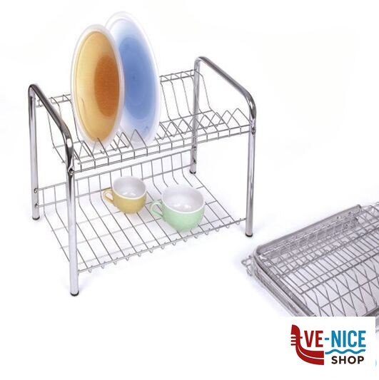 SCOLAPIATTI CROMATO SMONTABILE CON BASE E SUPPORTI, DUE DIVERSE GRIGLIE: UNA PER I PIATTI E L ALTRA PER UTENSILI VARI.