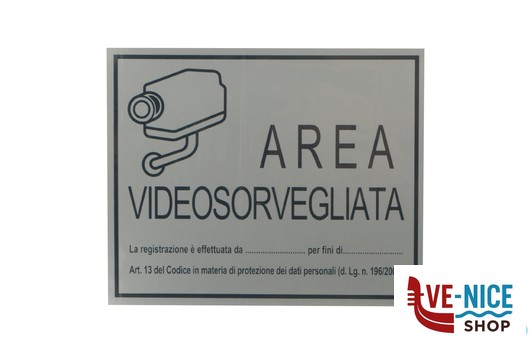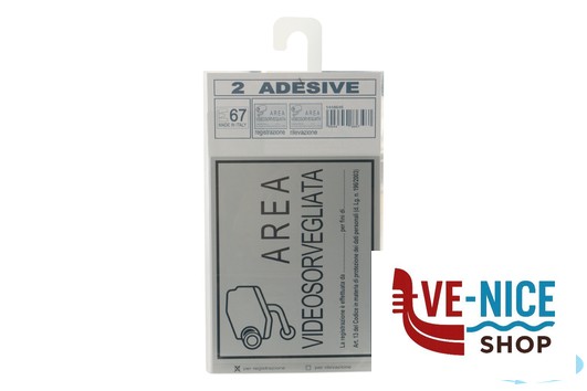 CONFEZIONE 2 TARGHE ADESIVE AREA VIDEOSORVEGLIATA CM 15X12