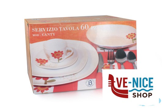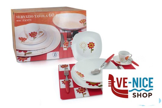 SERVIZIO TAVOLA CANDY 60 PEZZI IN PORCELLANA DECORATA.