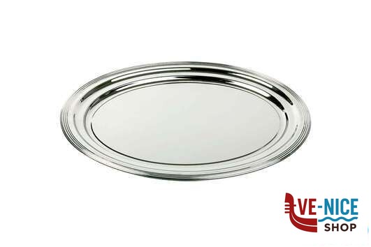 CLASSIC-VASSOIO OVALE CM 46X34 METALLO CROMATO CON DECORAZIONE LINEA, BORDO ARROTONDATO 00398