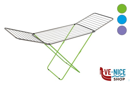 STENDIBIANCHERIA IN ACCIAIO ZINCATO FINO A 20 METRI DI STENDITURA, GAMBE IN ACCIAIO VERNICIATO NEI COLORI ASSORTITI, VERDE, BLU VIOLA, CON PIEDINI ANTISCIVOLO