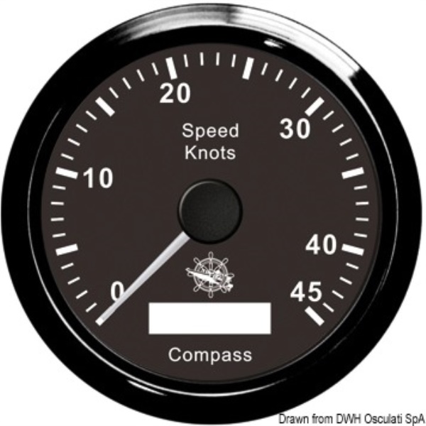 Strumentazione motore ed impianti Strumentazione motore Spidometro/contamiglia GPS senza trasduttore Non richiede trasduttore ed è fornito completo di antenna GPS 32 canali. – Tipo 1: Spidometro / bussola: indica in modo analogico la velocità 0-45 nodi ed in digitale la rotta bussola (di grado in grado). – Tipo 2: Spidometro / totalizzatore / bussola: indica in modo digitale la velocità 0/999 nodi, Km/h o MPH, la distanza percorsa fino a 99999 miglia e la rotta bussola (di grado in grado). Quadrante retroilluminazione sia rossa sia gialla.