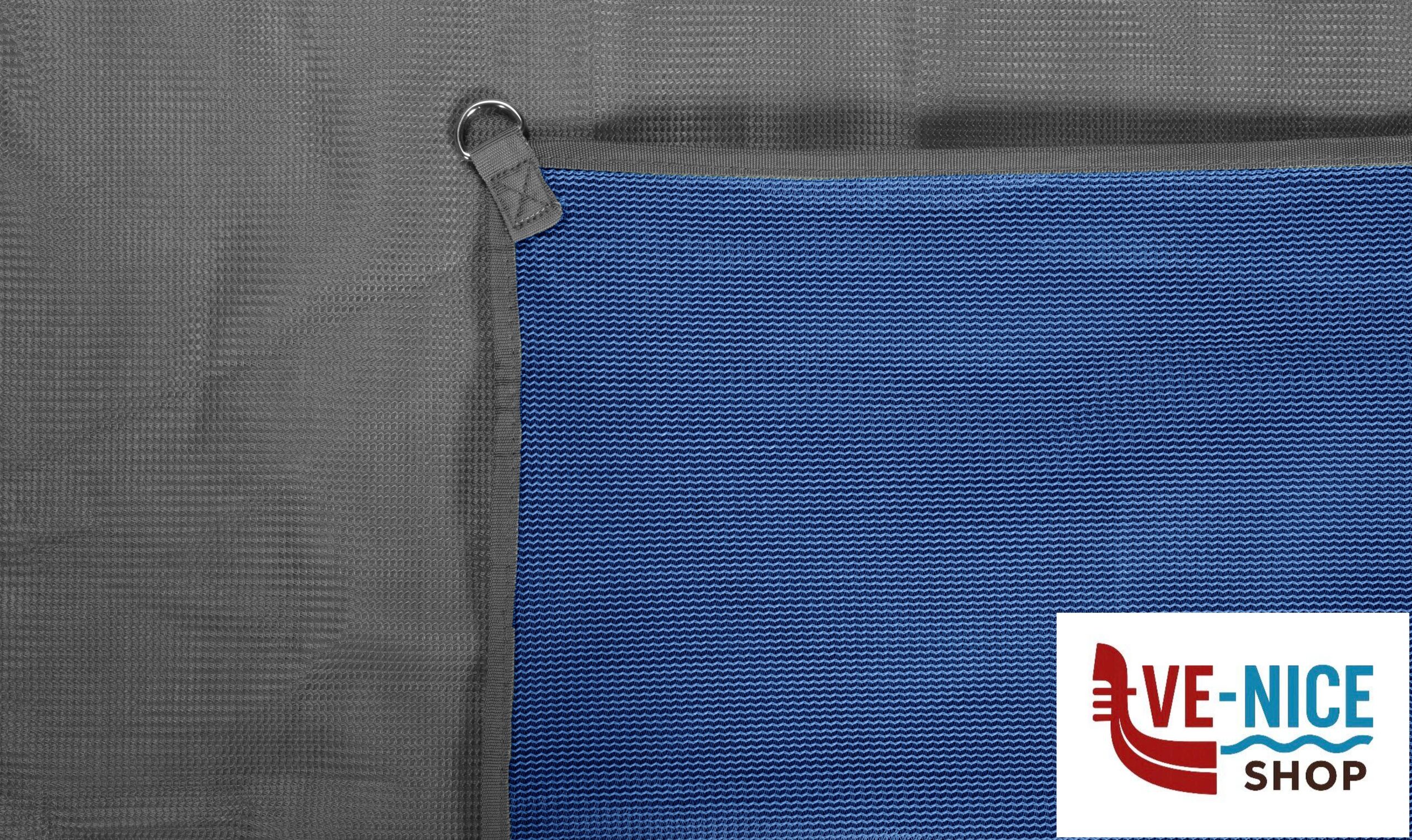 Sand and dust-free floor carpet for tents and awnings, made from a new, specially woven polyester material.