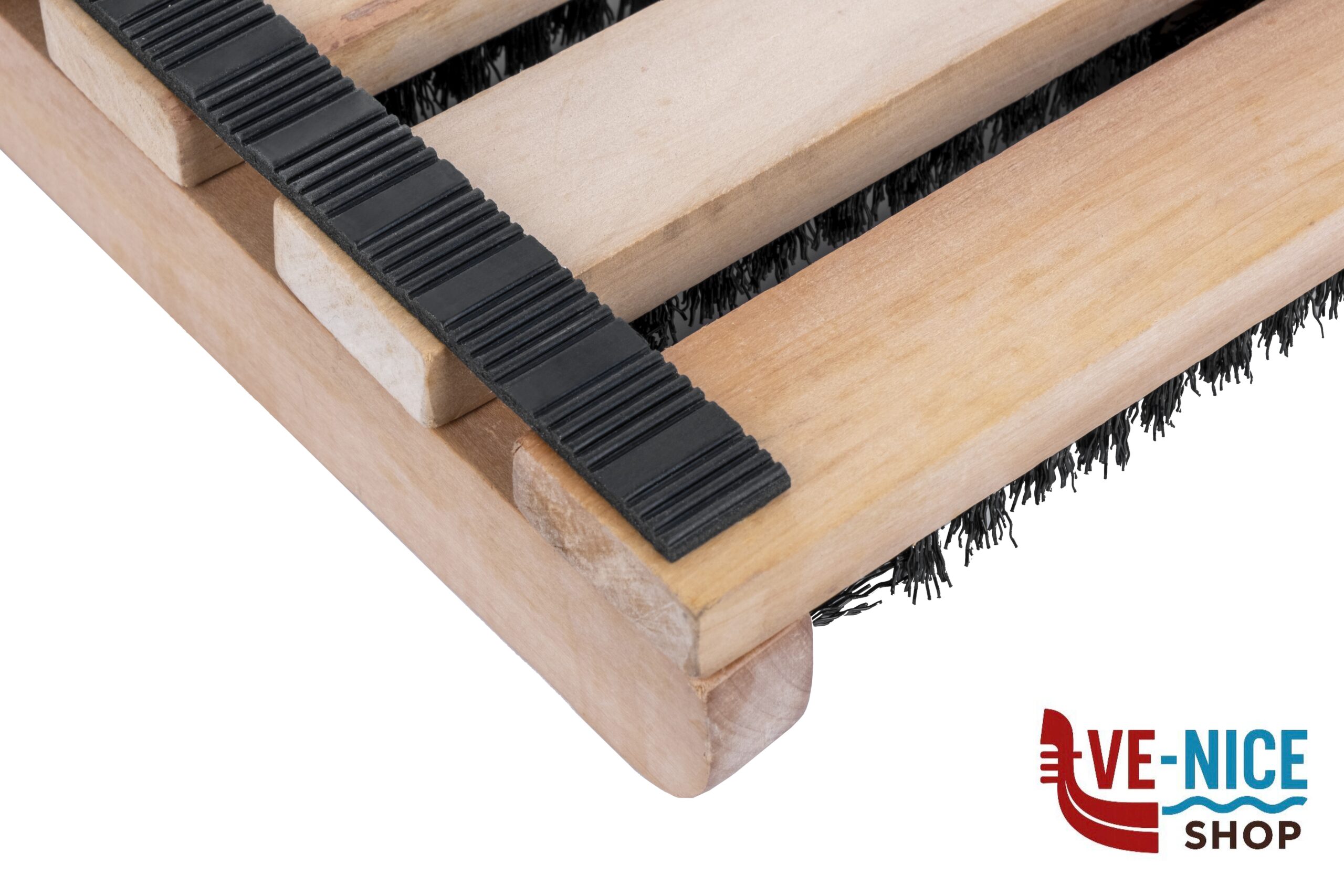 Door mat with wooden frame. The brushes on the lower part and on the sides akllow the optimal cleaning of both shoes.