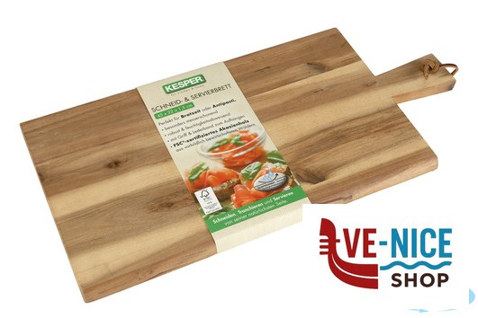 TAGLIERE IN LEGNO DI ACACIA, ROBUSTO ELEGANTE E DI ALTA QUALITA’.DA TAGLIO E DA SERVIZIO, IMPREGNATO CON OLIO ALIMENTARE PER RIDURRE IL RISCHIO DI INTRUSIONE DI UMIDIT, LO RENDE PI RESISTENTE E LO SALVA DA UNA CONTAMINAZIONE PRECOCE. CERTIFICATO FSC, IL LEGNO PROVIENE DA BOSCHI GESTITI IN MODO SOSTENIBILE.