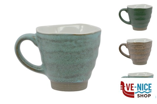 COLLEZIONE DI TAZZE IN STONEWARE CON UN PIACEVOLE DECORO A STRISCIE IN RIELIEVO. DISPONIBILI IN 3 COLORI ASSORTITI