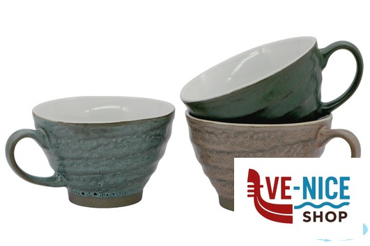 COLLEZIONE DI TAZZE IN STONEWARE CON UN PIACEVOLE DECORO A STRISCIE IN RIELIEVO. DISPONIBILI IN 3 COLORI ASSORTITI