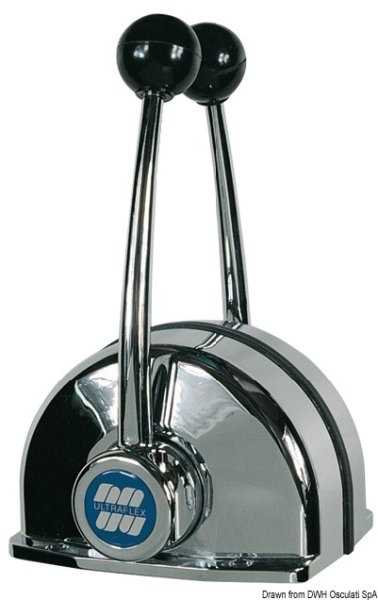 Timonerie Scatole di comando Comando monoleva in lega pressofusa e cromate Per il montaggio a cruscotto. Tirando in fuori la leva si disinnesta l’invertitore durante il riscaldamento del motore. Muniti di frizione interna, utilizzano cavi C2/C8/ MACH0.