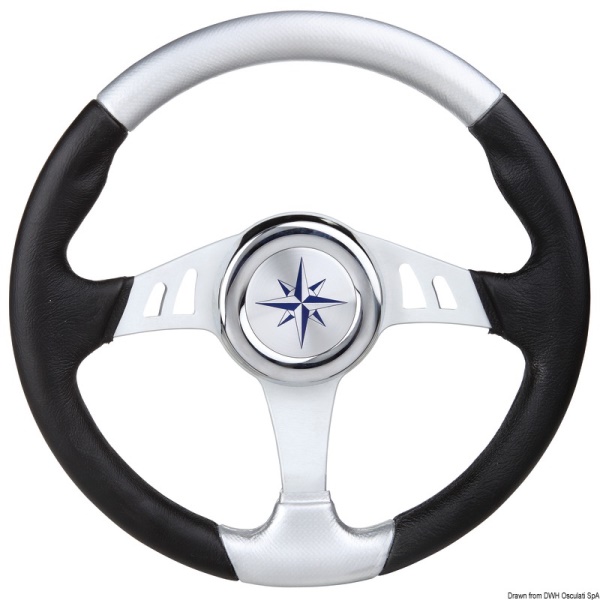 Timonerie Volanti e timoni Volante Skipper In poluiretano morbido, razze argento, tappo cromato. Completi di mozzo centrale universale.