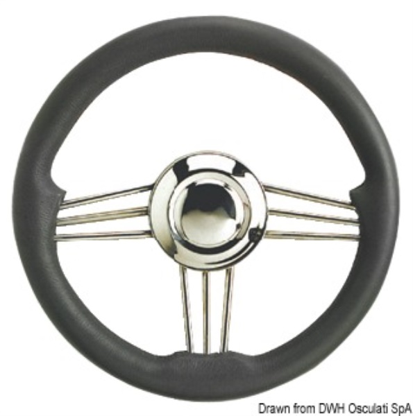 Timonerie Volanti e timoni Volante con struttura in Acciaio Inox lucidato a specchio Mozzo centrale con cono universale, regolabile per centrare il volante. Ø 350 mm.