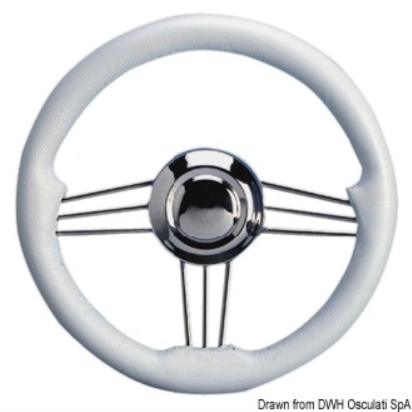 Timonerie Volanti e timoni Volante con struttura in Acciaio Inox lucidato a specchio Mozzo centrale con cono universale, regolabile per centrare il volante. Ø 350 mm.