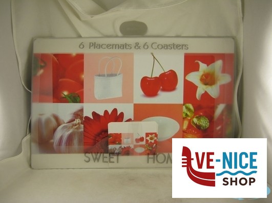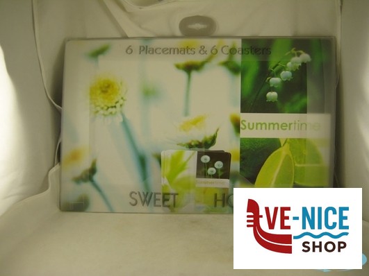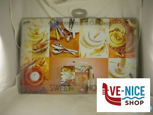 SET 6 TOVAGLIETTE COLAZIONE CON 6 SOTTO BICCHIERI DECORI ASSORTITI