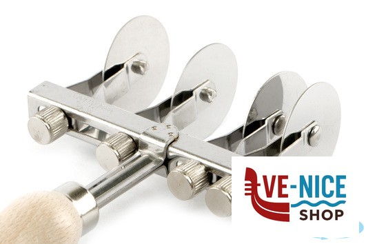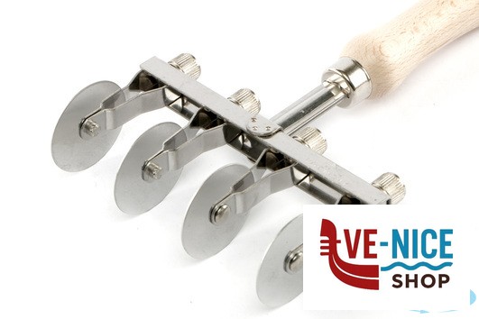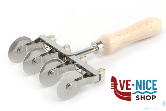 TAGLIAPASTA REGOLABILE CON 4 LAME LISCIE INOX 18C CON MANICO LEGNO DI FAGGIO CM 22X14,5X4
