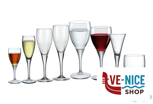BICCHIERE PER L ACQUA CON FORMA CLASSICA BOMBATA IN VETRO CRISTALLINO TRASPARENTE