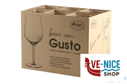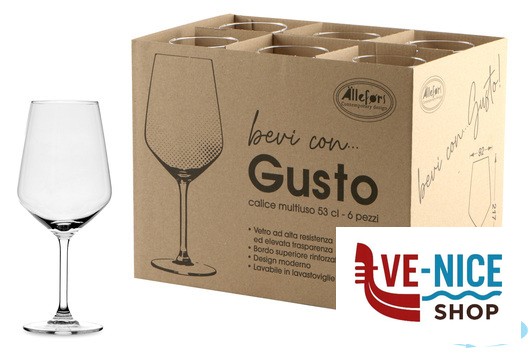 Bevi con Gusto in un bellissimo calice dalla forma elegante, ma allo stesso tempo moderna adatto per la tavola per vini rossi e per ogni tipo di cocktail.