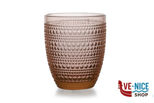 BICCHIERE IN VETRO COLORATO IN PASTA CON UNA ELEGANTE LAVORAZIONE A RILIEVO CON PERLINE. ELEGANZA E TRADIZIONE SI MESCOLANO ALLA MODERNITA DI UNA TAVOLA MAI BANALE