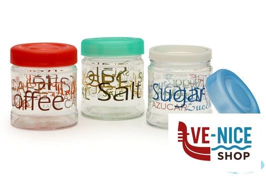 BARATTOLO IN VETRO DECORATO DAL DESIGN ALLEGRO E MODERNO.
