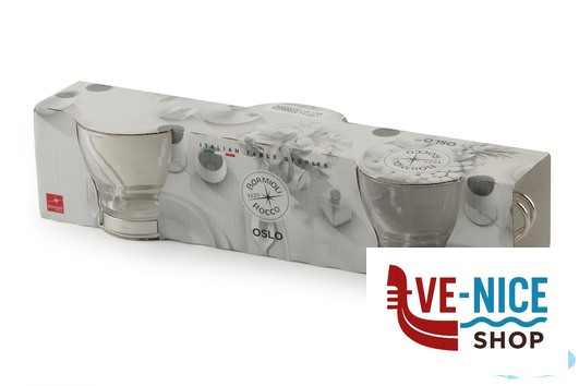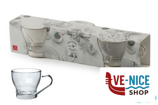 vetro OSLO PUNCH – CAFFE CONFEZIONE 3 BICCHIERI CL.11 MANICO ACCIAIO INOX TEMPERATO BORMIOLI ROCCO