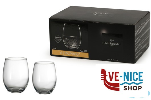 PRIMARY SERIE DI BICCHIERI SOFFIATI CON BORDO SOTTIGLIE TAGLIATO A FREDDO IN VETRO CRISTALLINO MOLTO LUMINOSO