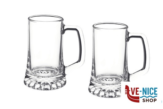 CONFEZIONE DI DUE CARAFFE DI BIRRA CL 51, REALIZZATI IN VETRO.